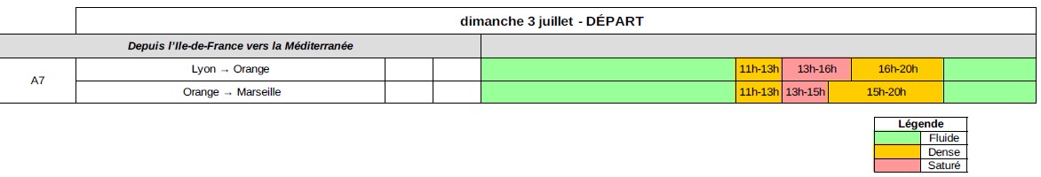 - évitez l’autoroute A7 entre Lyon et Orange, de 11h à 20h et entre Orange et Marseille, de 13h à 19h,