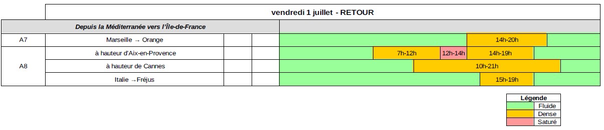 - évitez l’autoroute A7 entre Marseille et Orange, de 14h à 20h.