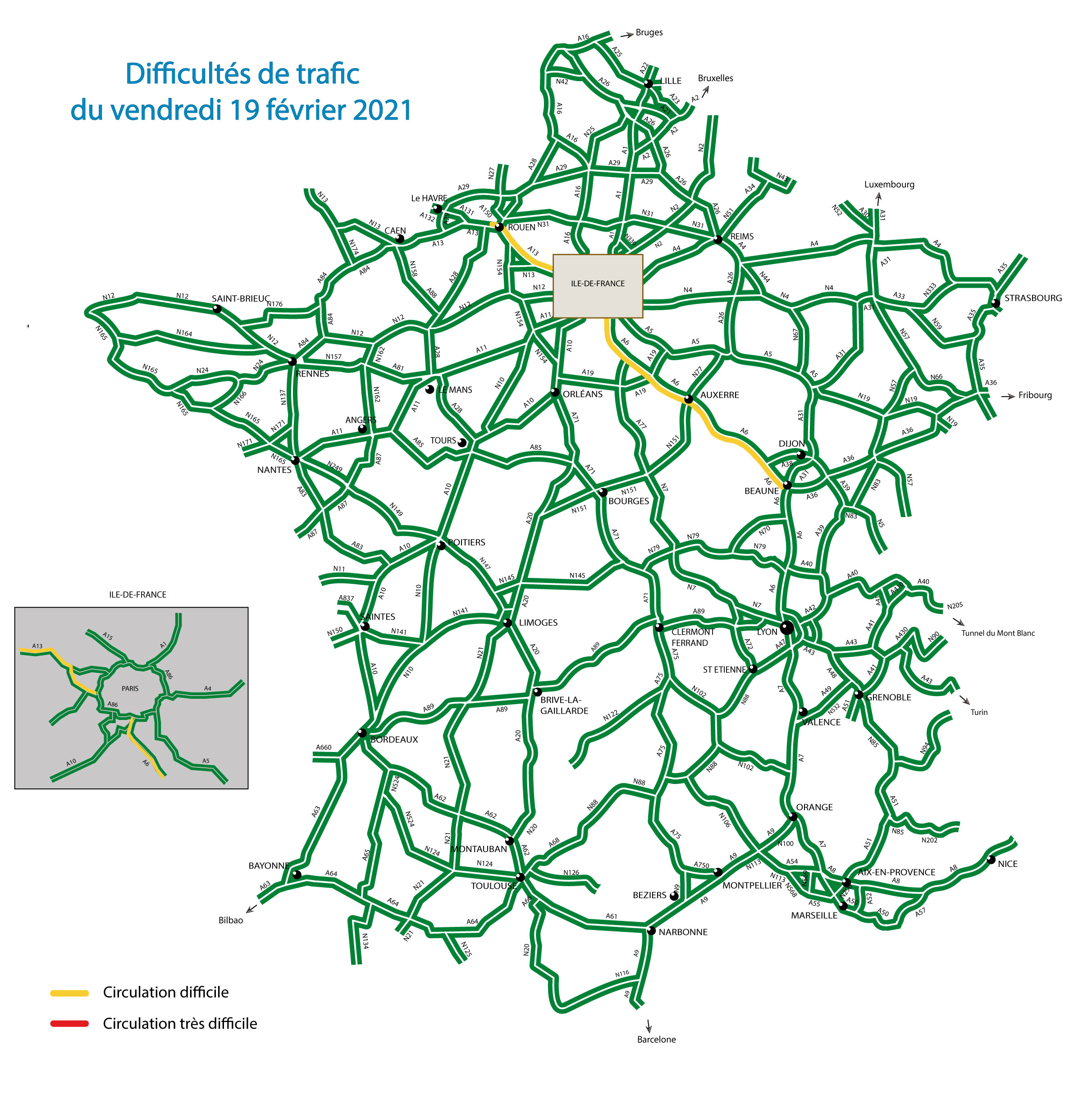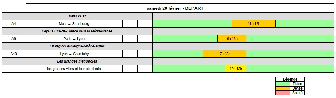 Samedi 20 février, jour de rotation des locations, des difficultés de circulation sont attendues sur l’ensemble du territoire et en particulier aux abords des grandes agglomérations. Ces difficultés devraient rester modérées.