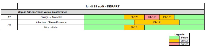 - évitez l’autoroute A8, entre l’Italie et Fréjus, de 10h à 12h, entre Fréjus et Aix-en-Provence, de 10h à 20h,