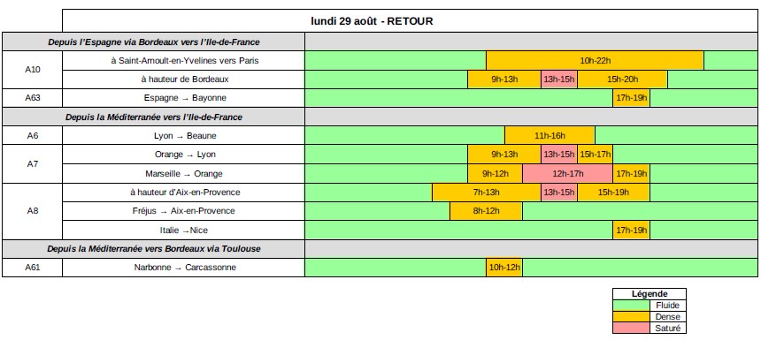 - évitez l’autoroute A61, entre Narbonne et Carcassonne, de 10h à 12h.