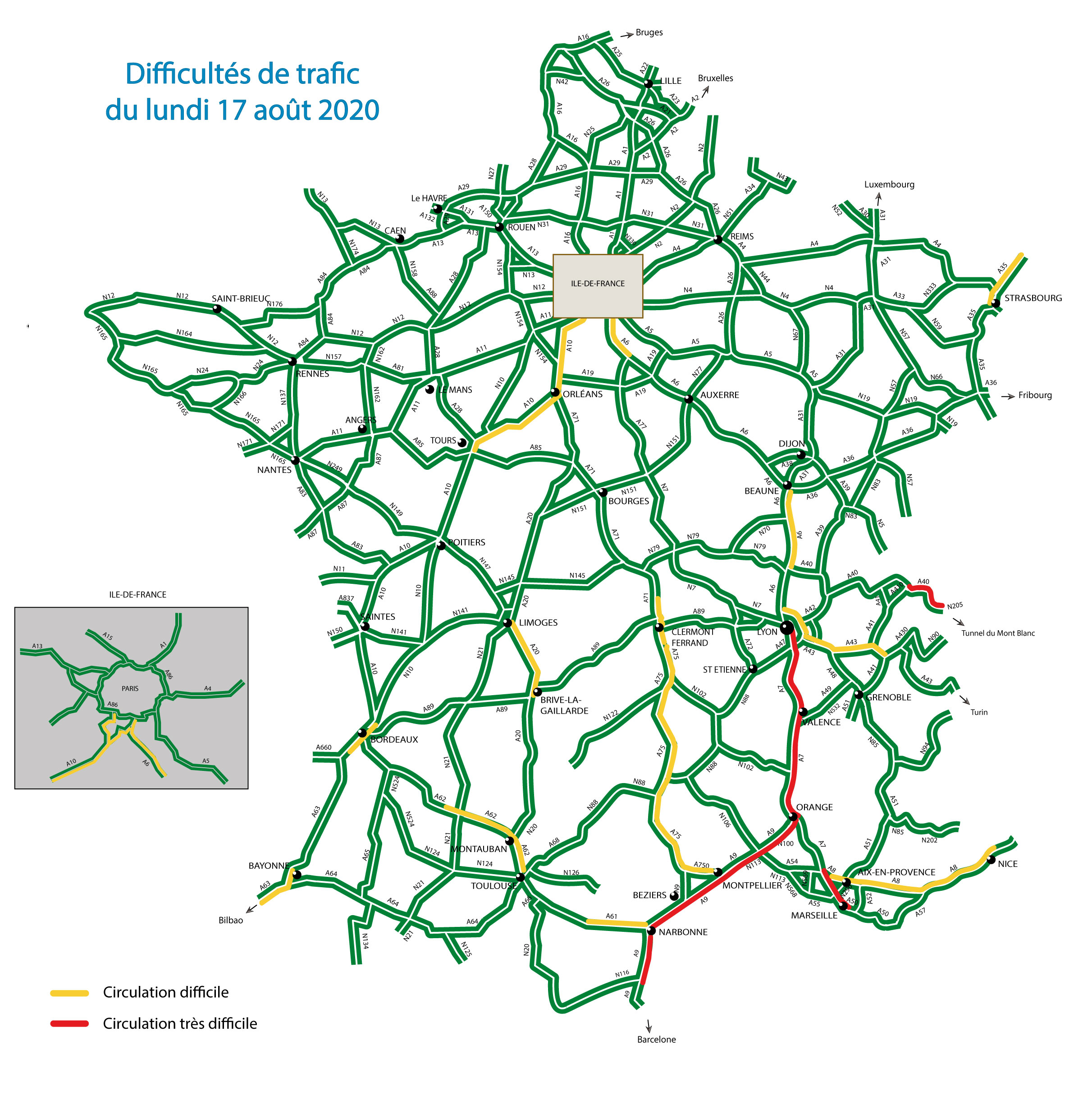 - évitez l’autoroute A7 entre Marseille et Lyon, de 9h à 19h.