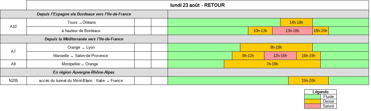 Vendredi 20 août, les retours devraient démarrer dès le début de la matinée depuis le Sud de la France et s’intensifieront à partir du tout début d’après-midi. Les difficultés devraient perdurer jusqu’en fin de soirée.