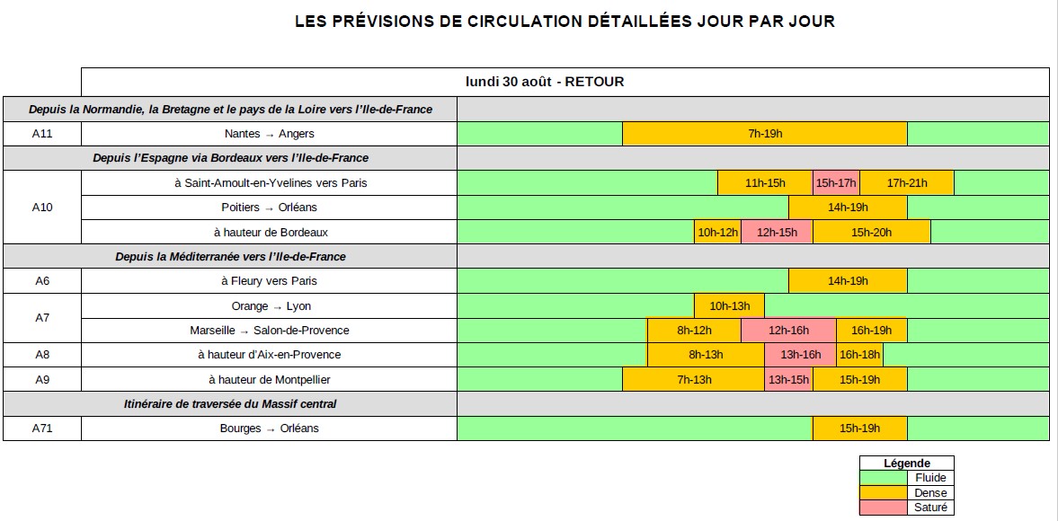 Lundi 30 août, en région parisienne, outre les difficultés habituelles qui seront de retour et qui paralysent au quotidien une grande partie du réseau routier régional, des retours de vacanciers sont attendus sur les autoroutes A10 et A6.