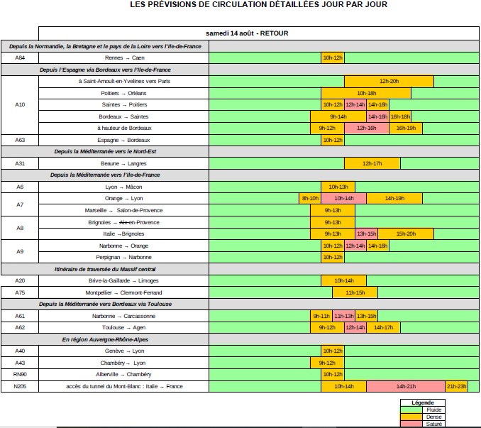 Prévisions du samedi 14 août retours