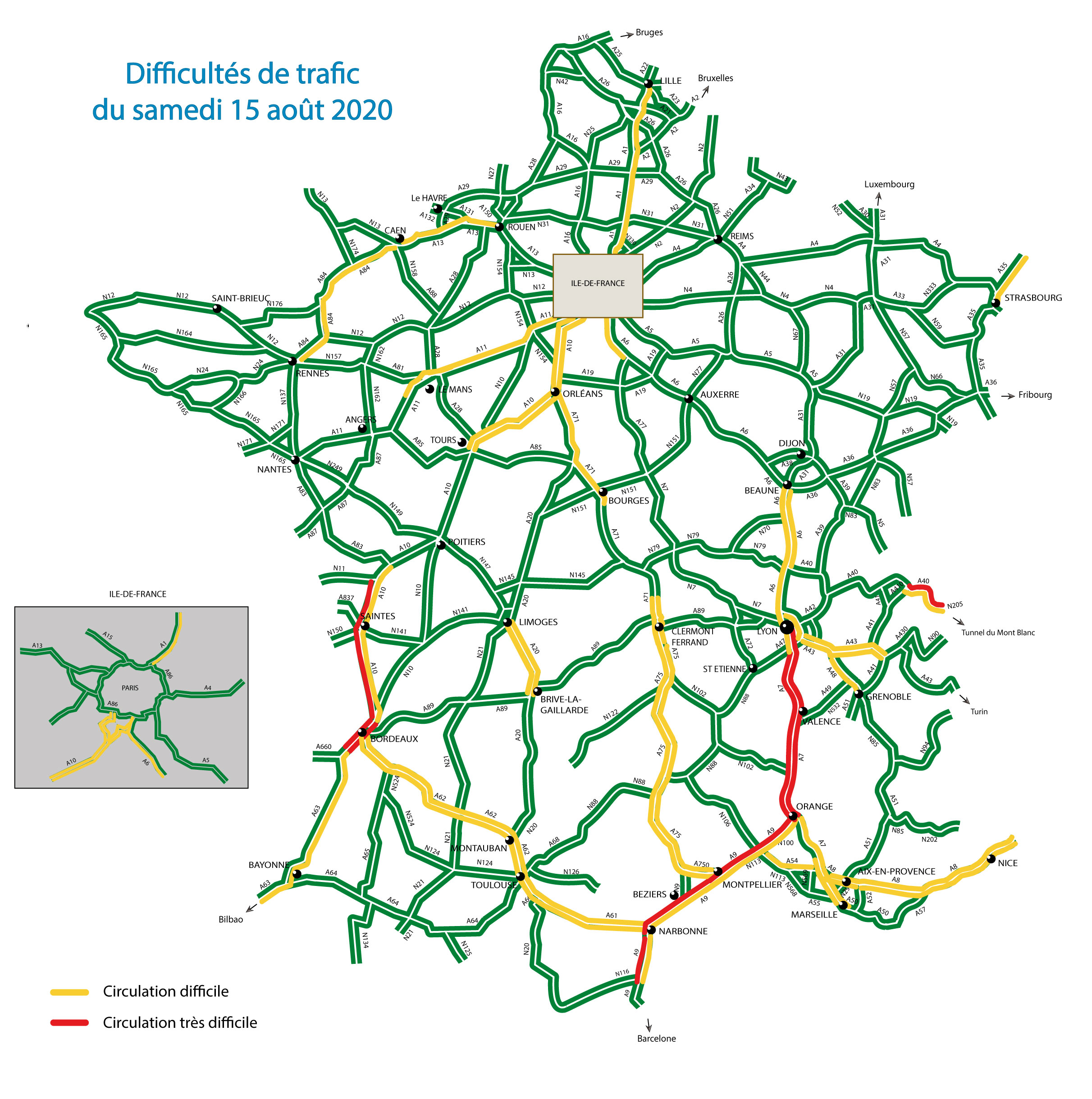 - évitez l’autoroute A7 entre Marseille et Lyon, de 9h à 19h.