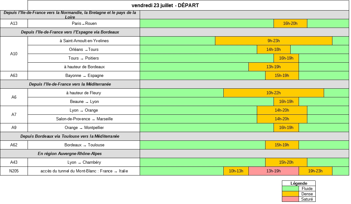 Vendredi 23 juillet, la journée s’annonce chargée dans le sens des départs. La majorité des déplacements vers les lieux de vacances aura lieu dès le début de l’après-midi.